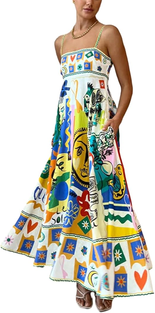 Women's Floral Print Sleeveless Summer Dress: Casual Party High-Waist Maxi with Hanging Straps