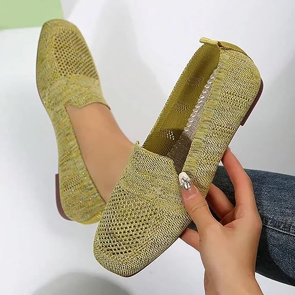 Women Sneakers Knitted Breathable Soft Side Soft Sole Casual Shoes Striped Mesh Comfortable Casual Shoes Leather Soles For Shoes Women